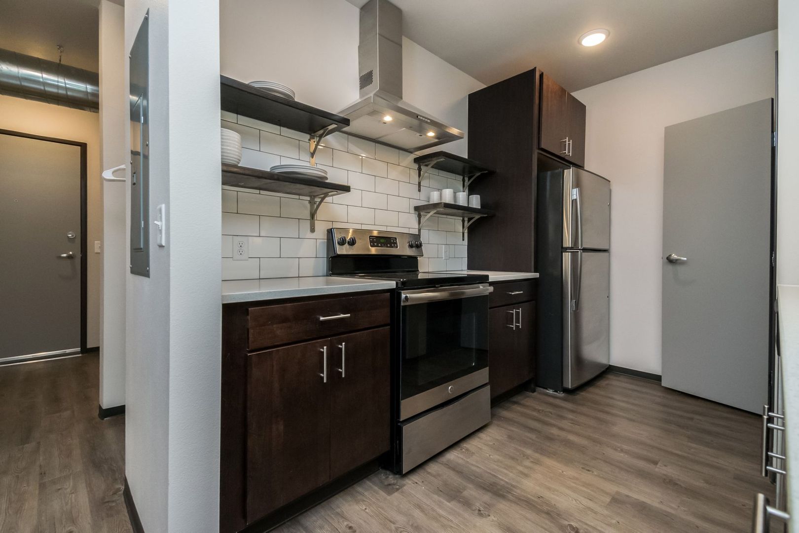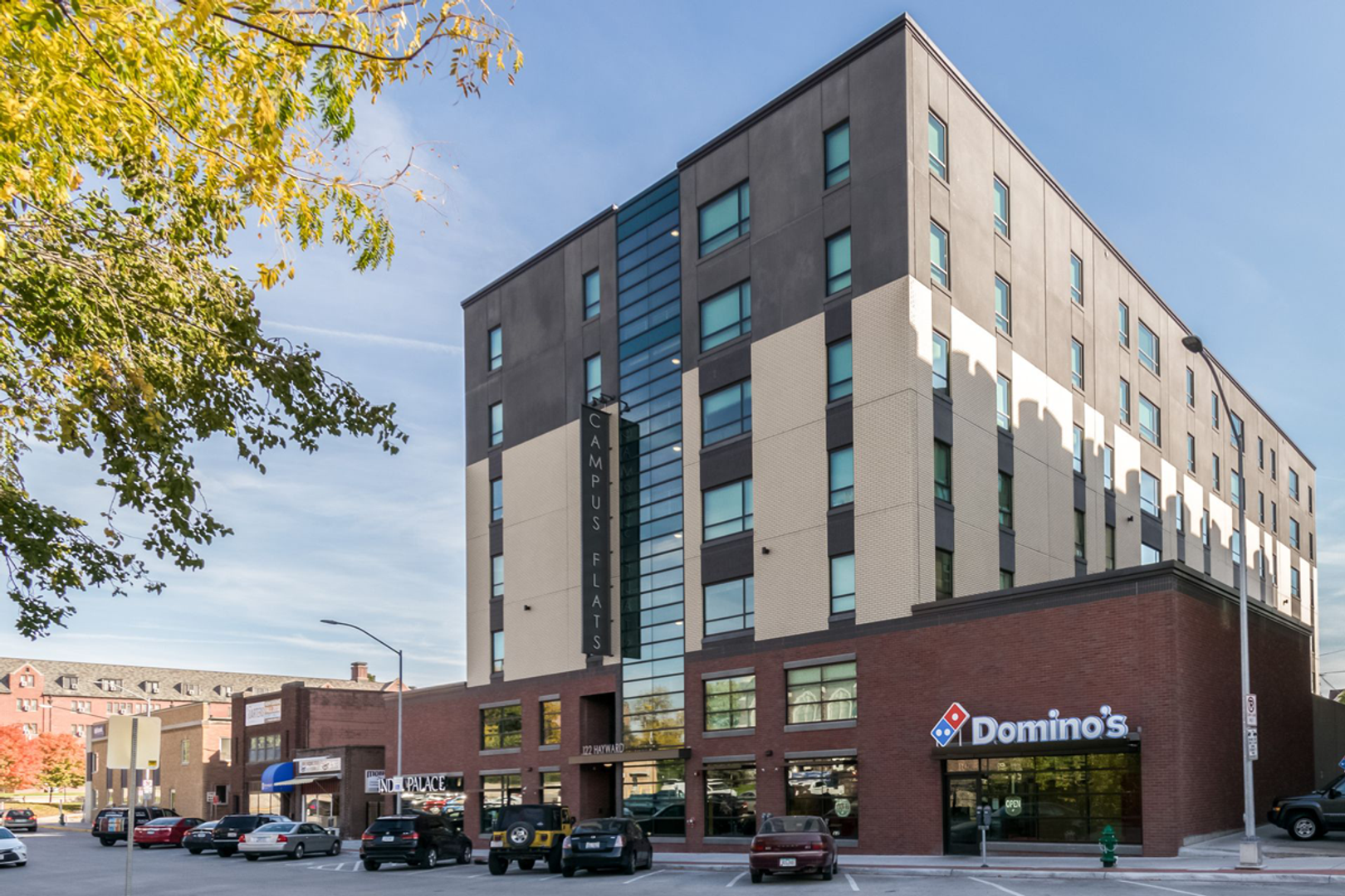 Campus Flats is a high-end student housing property located across the street from Iowa State University. You decide the perfect fit for you with optional modern furnishings and a number of spacious 4 bedroom options. On top of stainless steel appliances, quartz countertops, and hardwood style floors - Campus Flats apartments feature custom built fireplaces, modern vent hoods with subway tiles and floating kitchen shelves. Our amenities and community environment make Campus Flats the finest college living in Ames.
